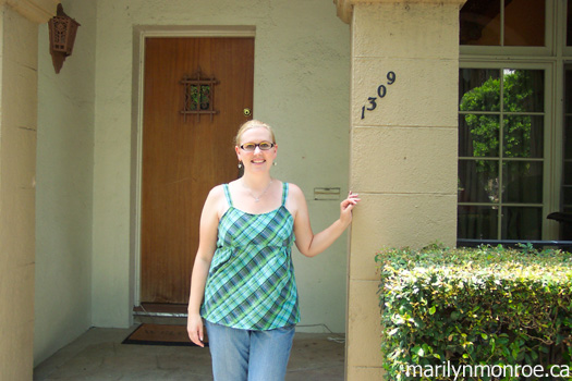 The address Marilyn wrote on this check was "1309 N. Harper Ave.". According to "Marilyn's Addresses: A Fan's Guide to the Places She Knew" this was the address of Marilyn's acting coach Natasha Lytess (1950-1951). It goes on to say that Marilyn lived here from time to time during her relationship with Johnny Hyde and then returned here after being asked to leave Hyde's Palm Drive home. Natasha later claimed that Marilyn tried to commit suicide at the house, shortly after Hyde's death. Again, the timeframe matches the date on the check. UPDATE: During my trip to Hollywood I went on a Marilyn tour with a great club. I was absolutely thrilled that one of the scheduled stops was the Lytess apartment! So here is a photo of me at the address where Marilyn lived when she wrote the check!